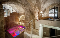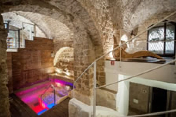 - Rituale benessere "Salus Per Aquam" (doccia emozionale, bagno turco, idromassaggio con cromoterapia, savonage con sapone nero del Marocco su letto in pietra calda, guanto scrub incluso, area relax e tisaneria)